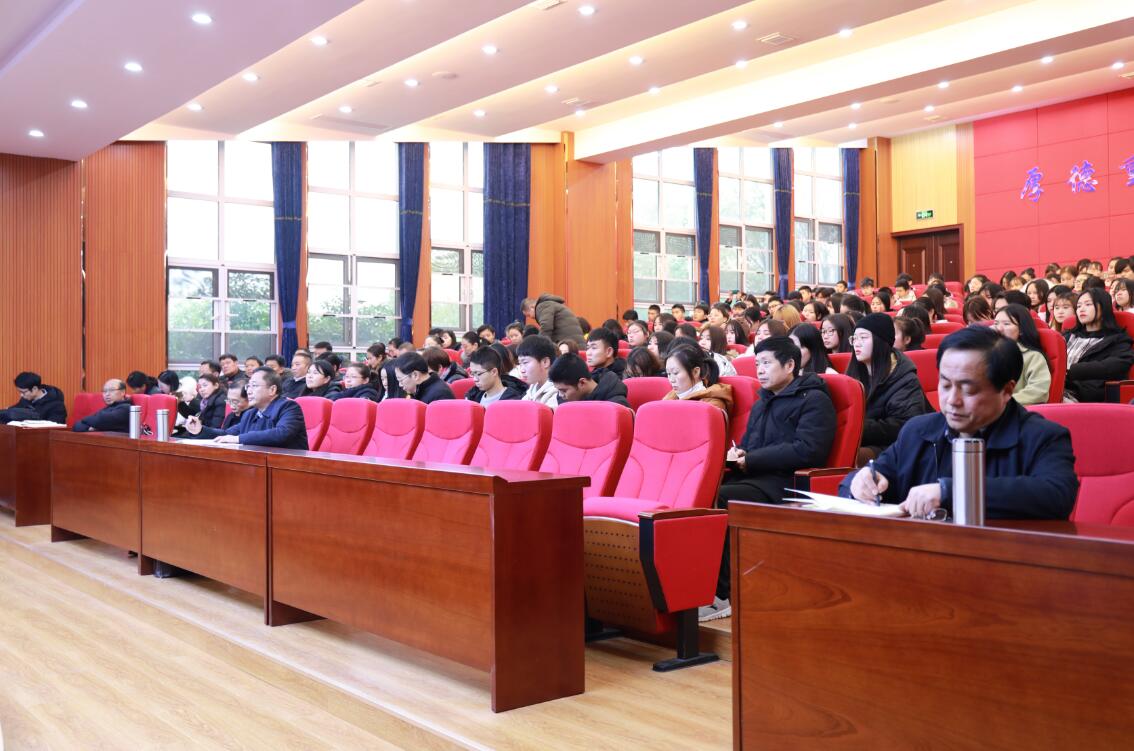 12月18日,市委宣讲团成员、市委党校副校长、副教授杨世勇到随州职业技术学院作题为《推进“中国之治”现代化的政治宣言和行动纲领---党的十九届四中全会精神学习体会》的辅导报告。随州职业技术学院领导、全体中层干部、教师党员代表、学生代表共300人到现场聆听宣讲报告。报告会由学院党委书记李德荣同志主持。