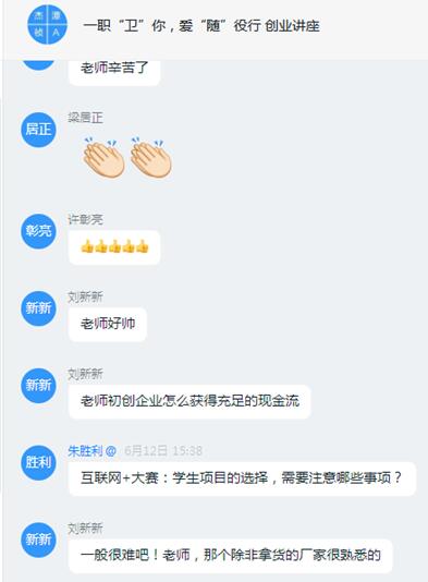 讲座期间,参与师生反映热烈,会议平台聊天面板不时被提问、感悟、赞扬、感谢等类别的反馈刷屏。会后,老师跟学生均反馈此次专题讲座效果很好,“张老师讲的很接地气,非常精彩!希望通过此次两院交流合作的系列活动,共同提升两院就业创业管理水平,为社会培养更多优秀人才”。(编辑:张亦飞  审核:肖新俊)