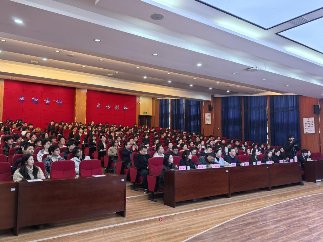 11月26日,学习贯彻党的二十届四中全会精神湖北省青年示范宣讲团、“悦学习·跃青春”随州市青年宣讲团走进随州职业技术学院开展专题宣讲。共青团随州市委副书记聂黎主持报告会。团市委相关负责同志、各县(市、区)团委主要负责同志、随州职业技术学院团委负责人、第八期“青马工程”培训班全体学员及团员青年代表共200余人参加活动。