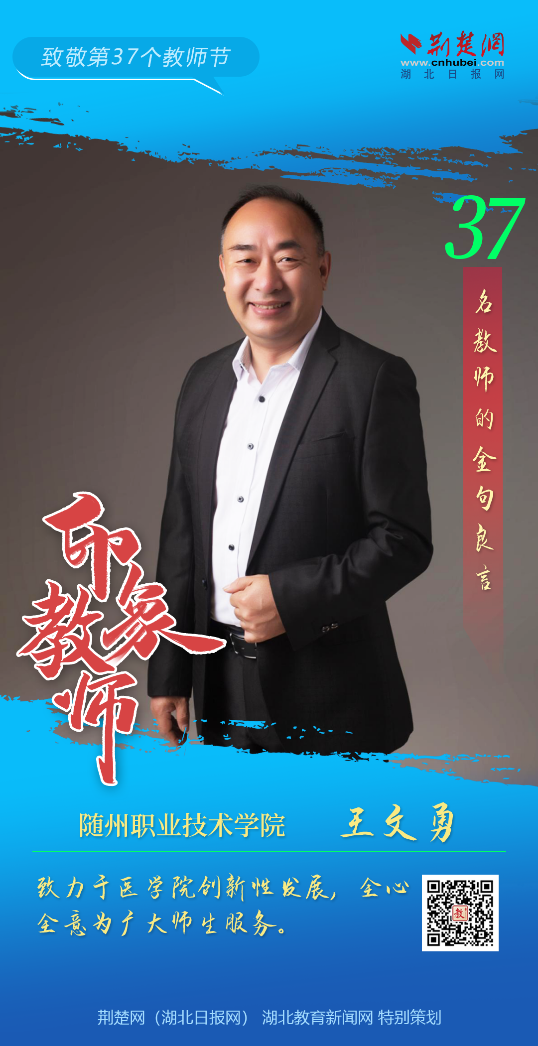 印象教师,金句良言。在第37个教师节这个特殊的日子,一起倾听随州职业技术学院印象教师的金句良言,感悟师者初心,凝聚前行力量。