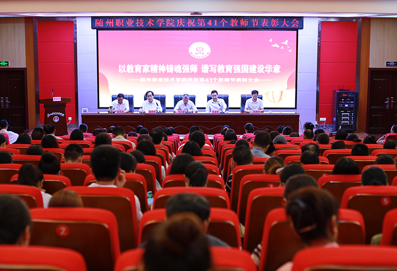 年年春华秋实,岁岁桃李芬芳。在全国第41个教师节来临之际,随州职业技术学院召开“以教育家精神铸魂强师谱写教育强国建设华章”为主题的教师节表彰大会。9月10日上午,学术报告厅座无虚席,党委书记马大奎,党委副书记、校长李建伟,党委委员、副校长梁学军、邹厚亏,工会主席张凤成出席大会,300余名教职工代表参会。大会由党委副书记、校长李建伟主持。