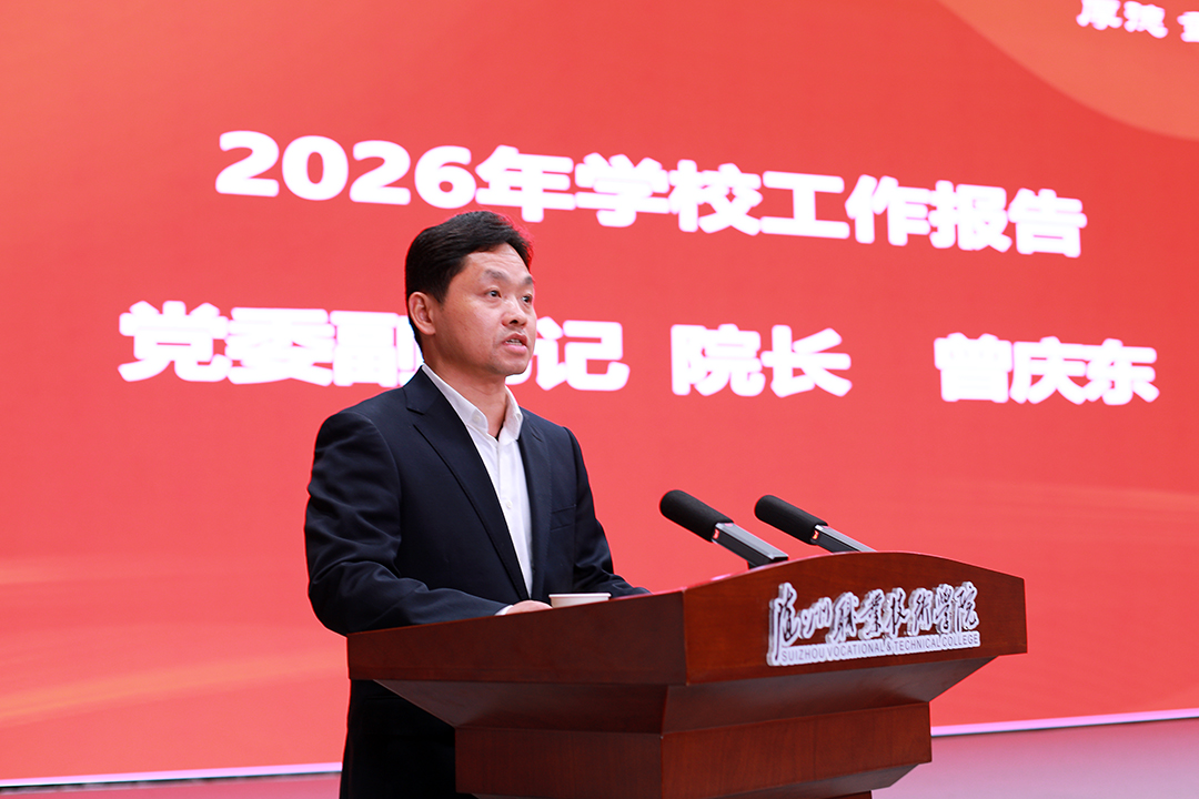 曾庆东以《坚定不移推进申本攻坚以历史主动精神开启“十五五”高质量发展新征程》为题,全面总结了学校“十四五”时期及2025年取得的主要成绩。他指出,2026年是实施“十五五”规划的开局之年,也是学校深化内涵建设、聚力申本达标的攻坚之年。学校将全面实施“本科创建、双高提质、区域赋能”发展战略,坚持稳规模、优结构、提质量、创特色、促开放,以历史主动精神狠抓落实,确保“十五五”高质量发展开好局、起好步。他强调,要以产教融合为主线,以数字化转型为驱动,以提升产业适配度为核心,以优势专业集群建设为抓手,聚焦新质生产力培育,着力建成高端技能人才培养基地、高水平产教融合示范基地、区域产业转型技术研发基地、炎帝编钟文化传承基地,成功升格为本科层次职业院校,奋力跻身“国内知名、省内一流”的高职院校行列,奋力推动学校事业发展再上新台阶,奋力开启“十五五”高质量发展新征程!