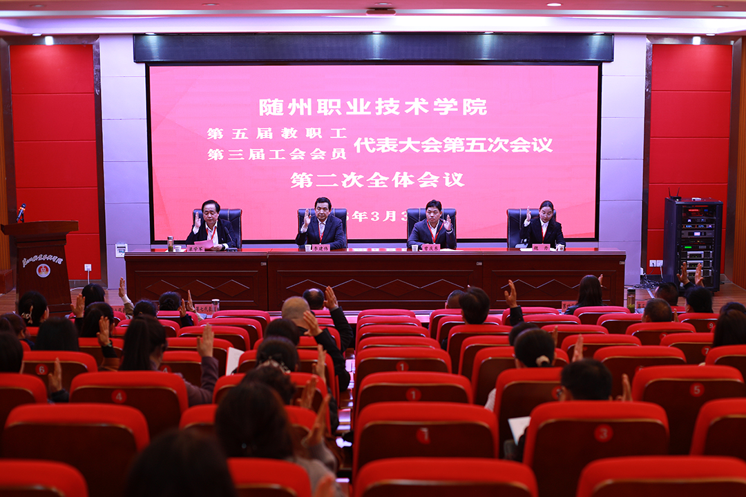 3月31日,我校在学术报告厅召开第五届教职工代表大会暨第三届工会会员代表大会第五次会议。党委书记李建伟致开幕词,党委副书记、校长曾庆东致闭幕词。党委委员、副校长梁学军、邹厚亏,党委委员、纪委书记、监察专员魏丹出席会议。学校正式代表、列席人员共85人参加会议。