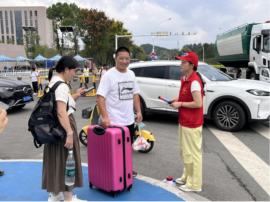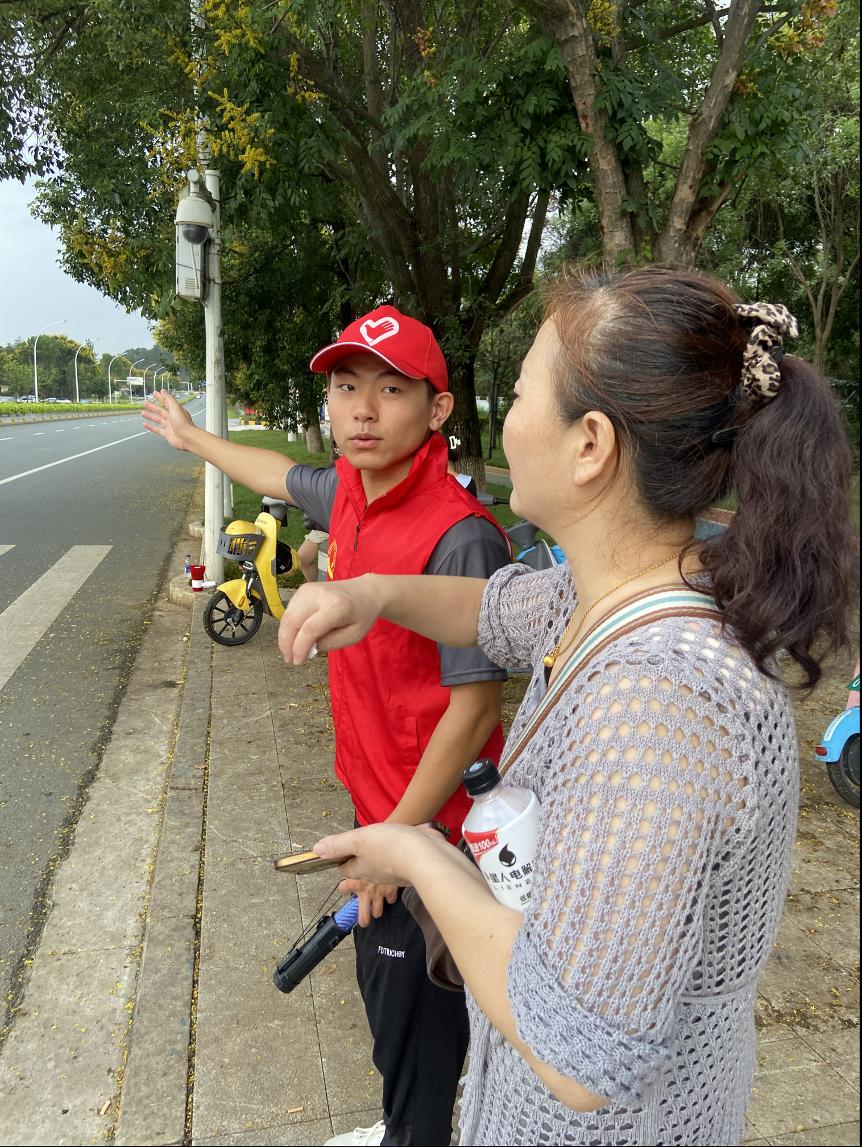 9月11日,正值我校2025级新生报到高峰期,这些交通安全执勤志愿者以“安全护航员”的身份,在校内外为新生上好“平安第一课”。“在校内校外步行时,请勿追逐打闹、不低头玩手机,注意主动避让车辆。”志愿者孔光艳在帮助新生指引路线时,积极宣传交通安全知识。