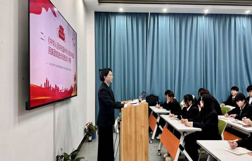 宣讲会上,程蓉紧扣《中华人民共和国民族团结进步促进法》展开系统解读。她以历史脉络为经,以现实场景为纬,深刻剖析中华民族多元一体的命运共同体本质,生动阐释“休戚与共、荣辱与共、生死与共、命运与共”的共同体理念,引导学员明晰民族团结的历史底蕴与时代价值,让“中华民族一家亲,同心共筑中国梦”的理念入脑入心。结合信息工程学院专业特色,程蓉锚定信息技术领域与国家安全、民族命运的紧密关联,强调:“代码无立场,但写代码的人必须坚守家国立场;技术无边界,但技术应用必须守护民族团结。”