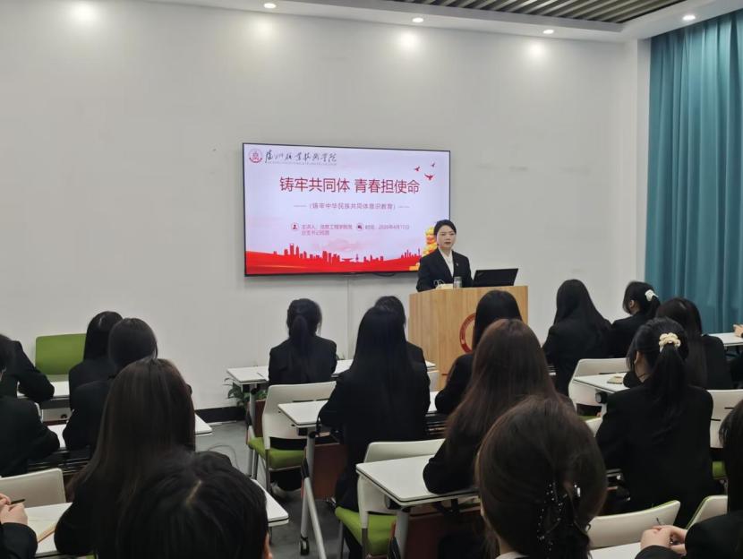 为深入学习贯彻习近平总书记关于加强和改进民族工作的重要思想,推动铸牢中华民族共同体意识教育走深走实,4月15日,信息工程学院在学校“一站式”学生社区举办专题宣讲会。学院党总支书记程蓉为第四期青年马克思主义者培训班40余名学员讲授专题思政课。